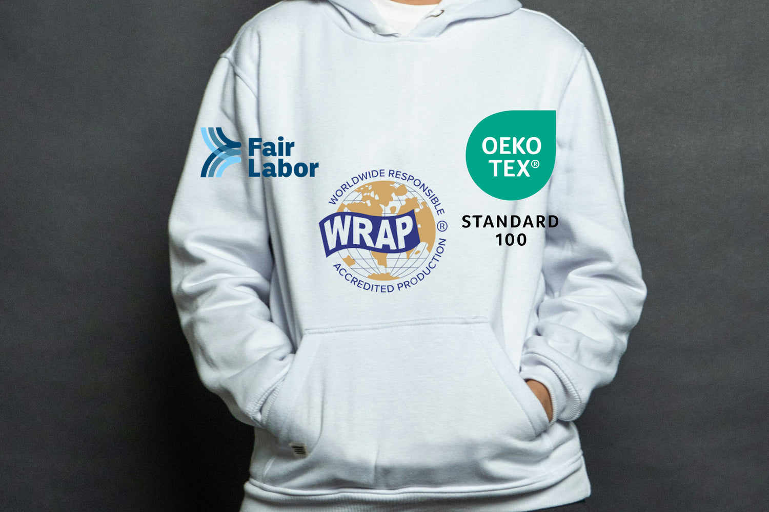 - OEKO-TEX, FLA und WRAP zertifiziert – nachhaltig und ethisch produziert