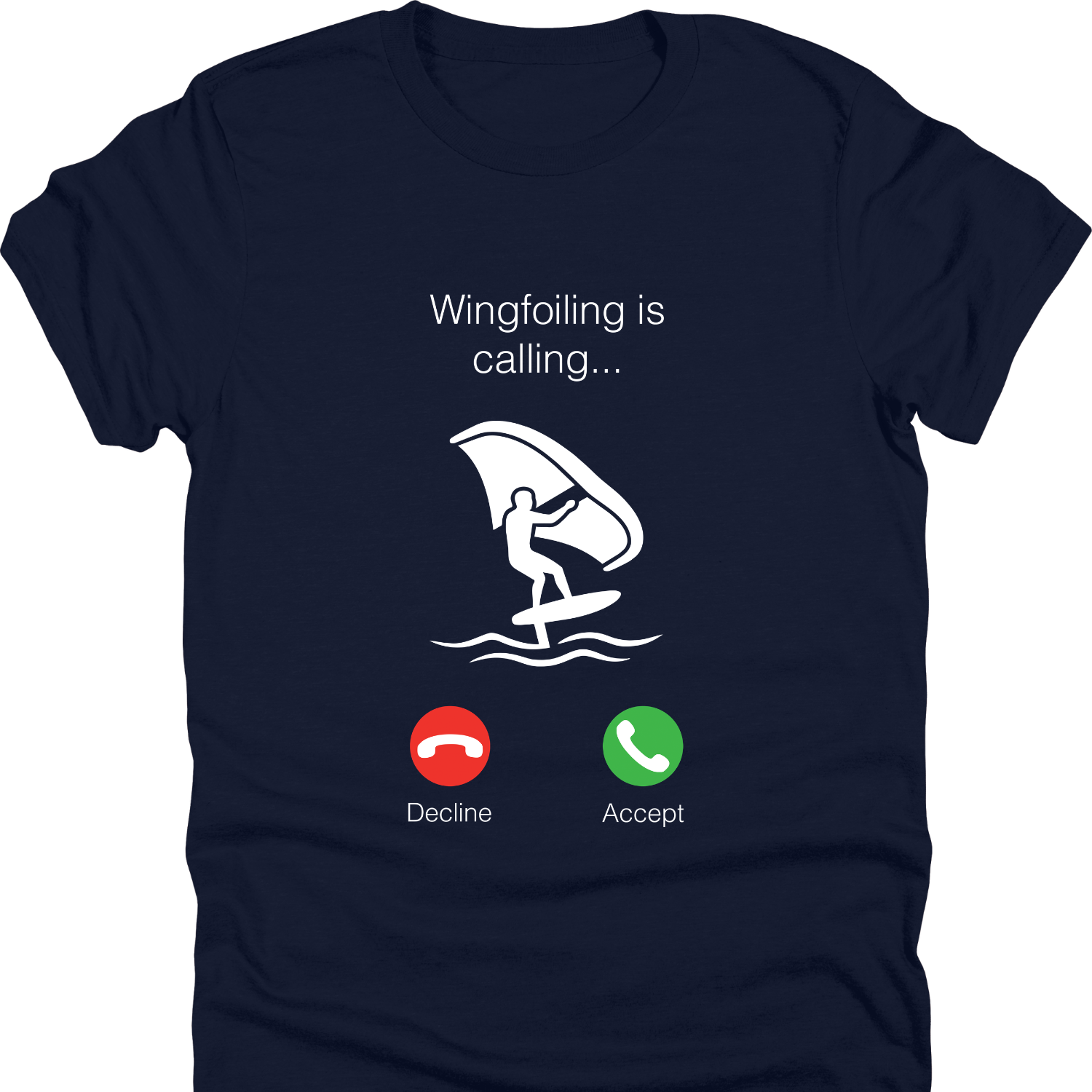 The Wingfoiling is Calling Tee is a fun wing foil t shirt built for riders who know the feeling — when the wind picks up, everything else can wait. Featuring a playful incoming call design with “wingfoiling is calling…”, this wing foiling shirt is a perfect inside joke for the community.